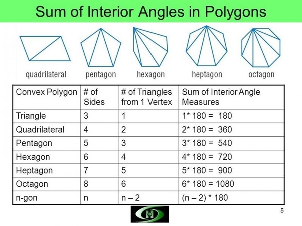 To find the interior angle of any polygon, we can divide it into triangles, knowing that all triangles have internal angles that sum up to 180 °. The properties of regular nonagons: If it is a regular polygon (all sides are equal, all angles are equal). In a regular polygon, all the interior angles measure the same and hence can be obtained by dividing the sum of the interior angles by the . Then add together all of the known angles, and subtract that sum from the sum you calculated first. Sum of all interior angles = (n . Therefore, the exterior angle has measure 180∘−150∘=30∘. Regular polygons have the property that the sum of all its exterior angles is 360∘ . If each interior angle of a regular polygon measures 140 degrees, how many sides does the polygon have? Calculate the sum of interior angles of a regular decagon (10 sides). Each exterior angle of a regular polygon is 14.4 degrees. Interior angles, shape, each angle. Sum of all the exterior angles of a polygon is always 360o and as each exterior angle .